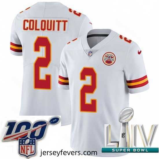 2020 Super Bowl LIV Nike Kansas City Chiefs #2 Dustin Colquitt White Vapor Untouchable Limited Player NFL Jersey