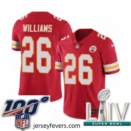Splendid 2020 Super Bowl LIV Nike Kansas City Chiefs #26 Damien Williams Red Team Color Vapor Untouchable Limited Player NFL Jersey designed to stand out in the crowd of supporters