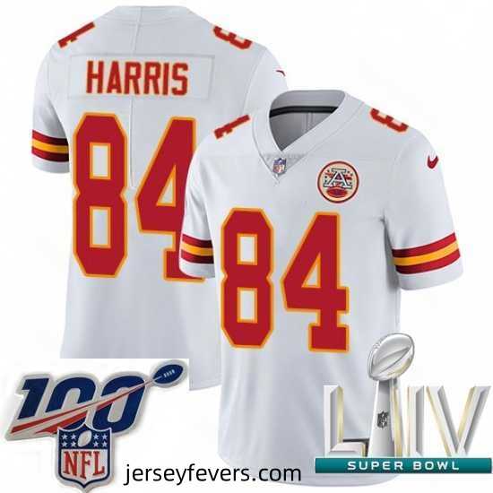 Dazzling 2020 Super Bowl LIV Nike Kansas City Chiefs #84 Demetrius Harris White Vapor Untouchable Limited Player NFL Jersey perfect for showing unwavering team pride