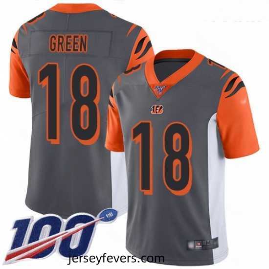 Stunning Bengals #18 A J Green Silver Stitched Football Limited Inverted Legend 100th Season Jersey engineered with top – notch quality for lasting wear