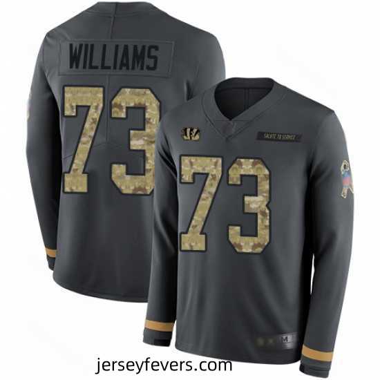 Stunning Bengals 73 Jonah Williams Anthracite Salute to Service Stitched Football Limited Therma Long Sleeve Jersey an essential piece for your Eagles memorabilia collection