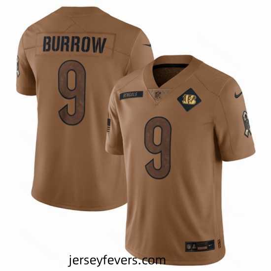 Dazzling Cincinnati Bengals 9 Joe Burrow 2023 Brown Salute To Service Limited Stitched Jersey crafted for the most devoted fans