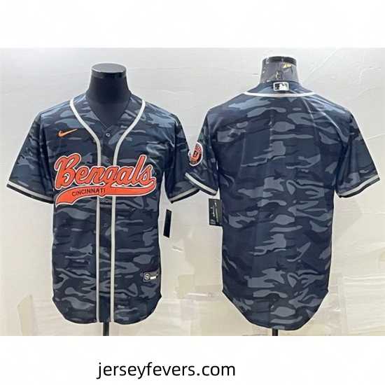 Cincinnati Bengals Blank Grey Camo With Patch Cool Base Stitched Baseball Jersey