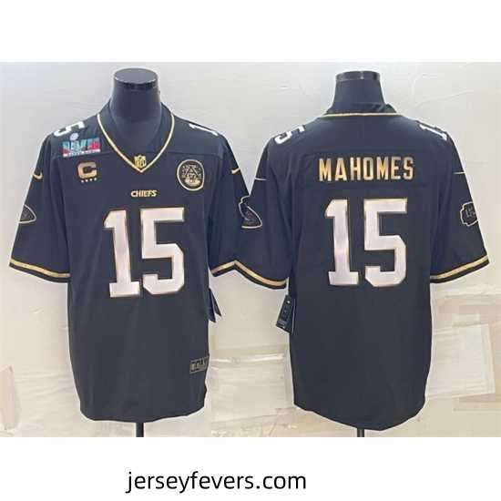 Exquisite Kansas City Chiefs 15 Patrick Mahomes Black Gold Super Bowl LVII Patch And 4 Star C Patch Vapor Untouchable Limited Stitched Jersey perfect for showing unwavering team pride