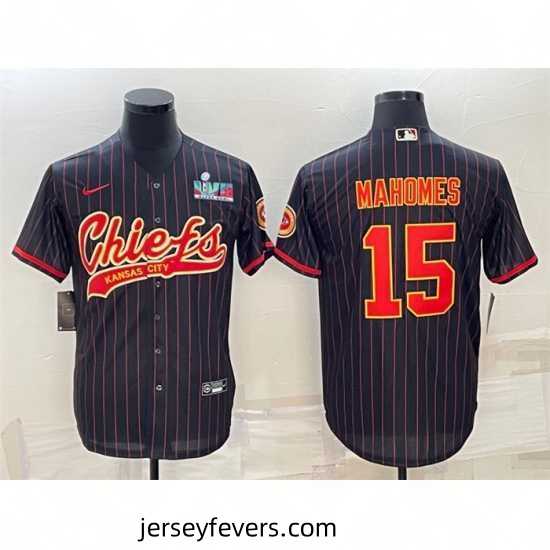 Kansas City Chiefs 15 Patrick Mahomes Black With Super Bowl LVII Patch Cool Base Stitched Baseball Jersey