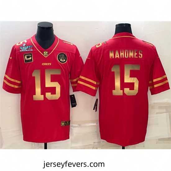Magnificent Kansas City Chiefs 15 Patrick Mahomes Red Gold Super Bowl LVII Patch And 4 Star C Patch Vapor Untouchable Limited Stitched Jersey crafted for the most devoted fans