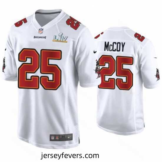 Gorgeous Lesean Mccoy Buccaneers White Super Bowl Lv Game Fashion Jersey perfect for showing unwavering team pride