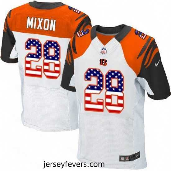 Mens Nike Cincinnati Bengals 28 Joe Mixon Elite White Road USA Flag Fashion NFL Jersey
