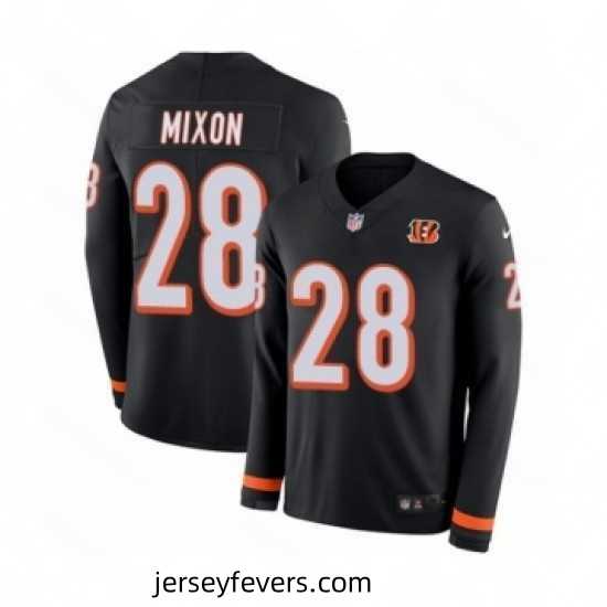 Splendid Mens Nike Cincinnati Bengals 28 Joe Mixon Limited Black Therma Long Sleeve NFL Jersey crafted for the most devoted fans
