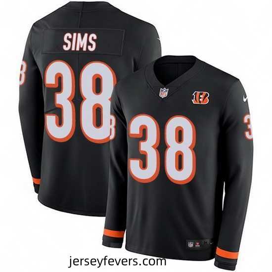 Nike Bengals 38 LeShaun Sims Black Team Color Stitched NFL Limited Therma Long Sleeve Jersey