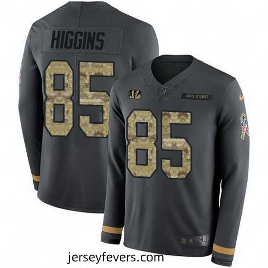 Nike Bengals 85 Tee Higgins Anthracite Salute to Service Stitched NFL Limited Therma Long Sleeve Jersey