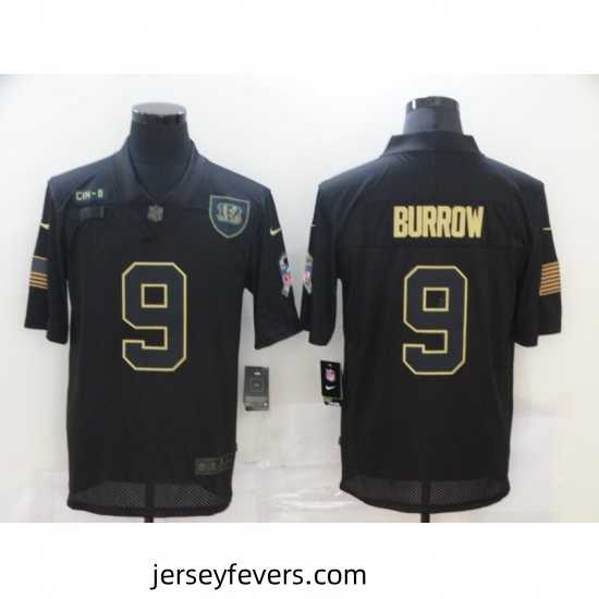 Nike Cincinnati Bengals 9 Joe Burrow Black 2020 Salute To Service Limited Jersey