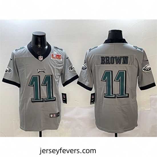 Philadelphia Eagles 11 A J Brown Grey 2025 Super Bowl LIX Patch Vapor Untouchable Limited Stitched Football Jersey