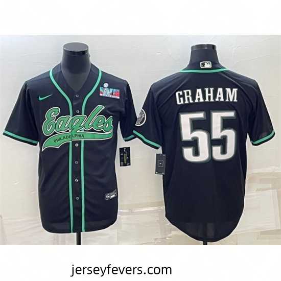 Exquisite Philadelphia Eagles 55 Brandon Graham Black With Super Bowl LVII Patch Cool Base Stitched Baseball Jersey a true collector’s gem for Eagles enthusiasts