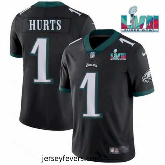 Stunning Toddler Philadelphia Eagles 1 Jalen Hurts Black Super Bowl LVII Patch Vapor Untouchable Limited Stitched Jersey crafted for the most devoted fans